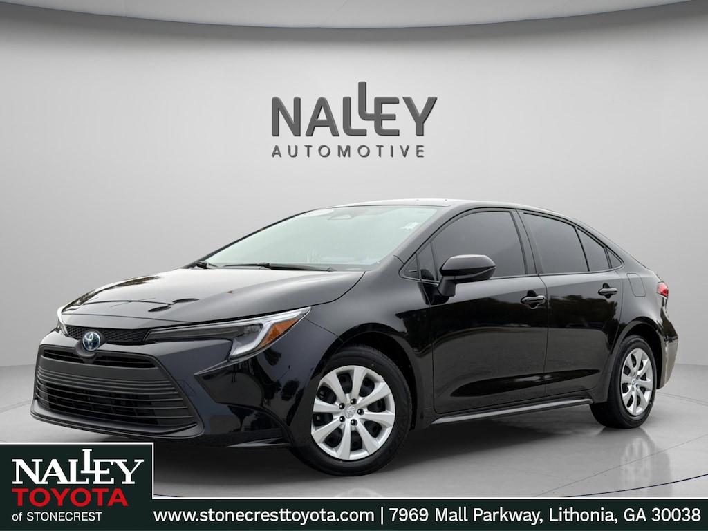 RECALL NOTICE: Some vehicles offered for sale may be subject to unrepaired manufacturer safety recalls. To determine the recall status of a vehicle, visit https://www.nhtsa.gov/recalls.For Sale: Certified 2025 Toyota Corolla Hybrid LEStep into the future of driving with this Certified 2025 Toyota Corolla Hybrid LE, finished in sleek Black with a matching Black interior. With only 3 miles on the odometer, this Corolla is practically brand new and comes backed by Toyotas Gold Certified program, giving you both the reliability and peace of mind you deserve.Powered by a 1.8L DOHC 16V VVT hybrid engine paired with an efficient CVT, the Corolla Hybrid LE delivers remarkable fuel economy while offering smooth, confident performance for both city and highway driving.The exterior blends modern styling with practical touches, featuring aerodynamic lines, LED headlights, and body-colored accents that give this sedan a refined yet sporty presence.Inside, the Black interior is designed for comfort and convenience with premium cloth seating, automatic climate control, keyless entry with push-button start, and a spacious layout that makes every drive enjoyable. The advanced infotainment system includes an 8-inch touchscreen with wireless Apple CarPlay and Android Auto, Bluetooth connectivity, and a premium sound system to keep you connected and entertained on the go.Safety comes first with Toyota Safety Sense 3.0, offering a suite of advanced features like pre-collision system with pedestrian detection, lane departure alert with steering assist, lane tracing assist, road sign assist, and full-speed range dynamic radar cruise control. Combined with blind spot monitoring and rear cross-traffic alert, this Corolla Hybrid provides confidence in every situation.As a Toyota Gold Certified vehicle, it has passed Toyotas rigorous 160-point quality assurance inspection and includes a CARFAX history report review. Youll also enjoy ownership perks such as a 12-month/12,000-mile comprehensive warranty, a 7-year/100,000-mile limited powertrain warranty, 1 year of roadside assistance, transferable coverage for added resale value, and warranty protection at over 1,400 Toyota dealers across the U.S. and Canada.With its near-new condition, incredible fuel efficiency, advanced safety features, and certification benefits, this Certified 2025 Toyota Corolla Hybrid LE is the smart choice for drivers who want both value and peace of mind. Its ready to deliver years of dependable performancedont wait, this one wont last.Contact Us:Nalley Toyota Stonecrest7969 Mall Parkway, Lithonia, GA 30038