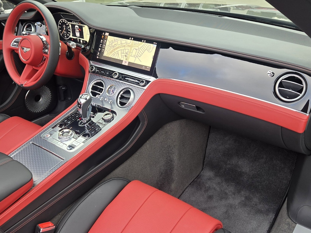 Technology and performance are equally impressive. This GTC is equipped with the **Touring Specification**, **Adaptive Cruise Control with City Assist**, **Head-Up Display**, **Top View Camera**, and **Bang & Olufsen for Bentley** premium audio. Rolling on **22 black-painted ten-spoke wheels**, the car features **red-painted brake calipers** behind cast-iron performance brakes, delivering confident stopping power.